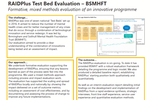 RAIDPlus Test Bed Evaluation – BSMHFT